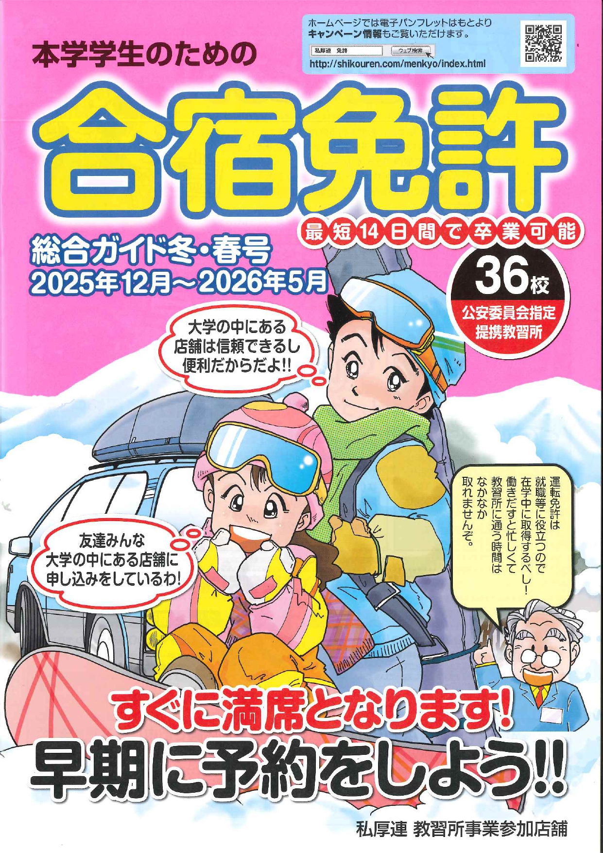 人気の教習所やプランは早いうちから予約をしておかないと、予約でいっぱいになってしまいますので、早めに計画をたて予約しましょう。お申し込みはサービスカウンターまでお気軽にお問い合わせください。